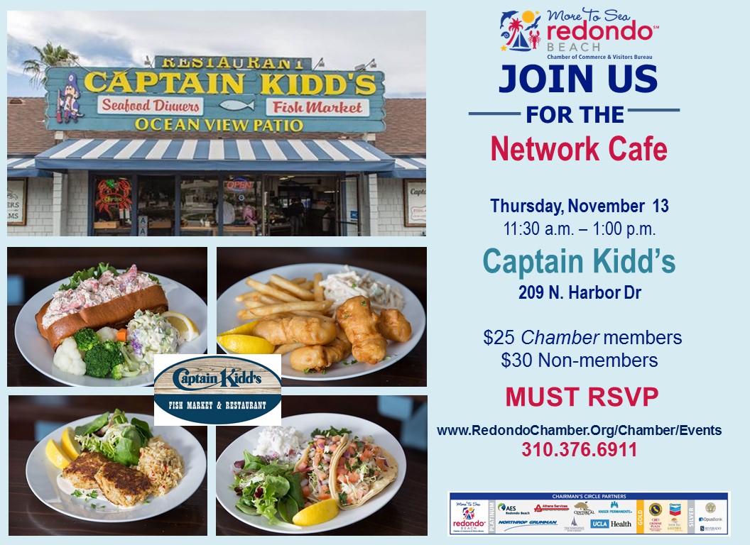 Join us for our Network Cafe Luncheon at Captain Kidd's Fish Market and Restaurant.